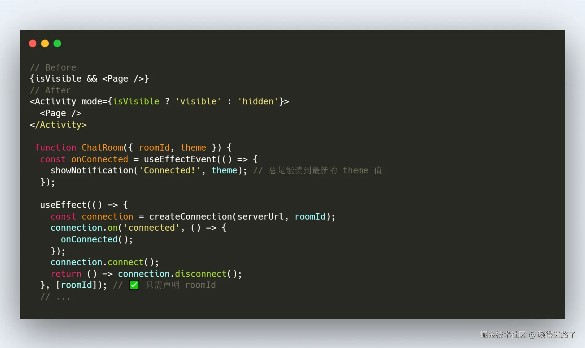 组件,一种可隐藏并恢复其组件 UI 及内部状态的方案;新增useEffectEvent