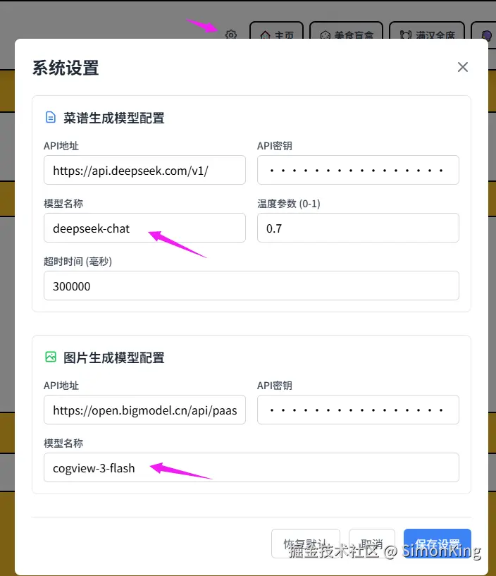 # 🎯 首次启动后,点击导航栏的 ⚙️ 图标可以动态配置AI模型参数