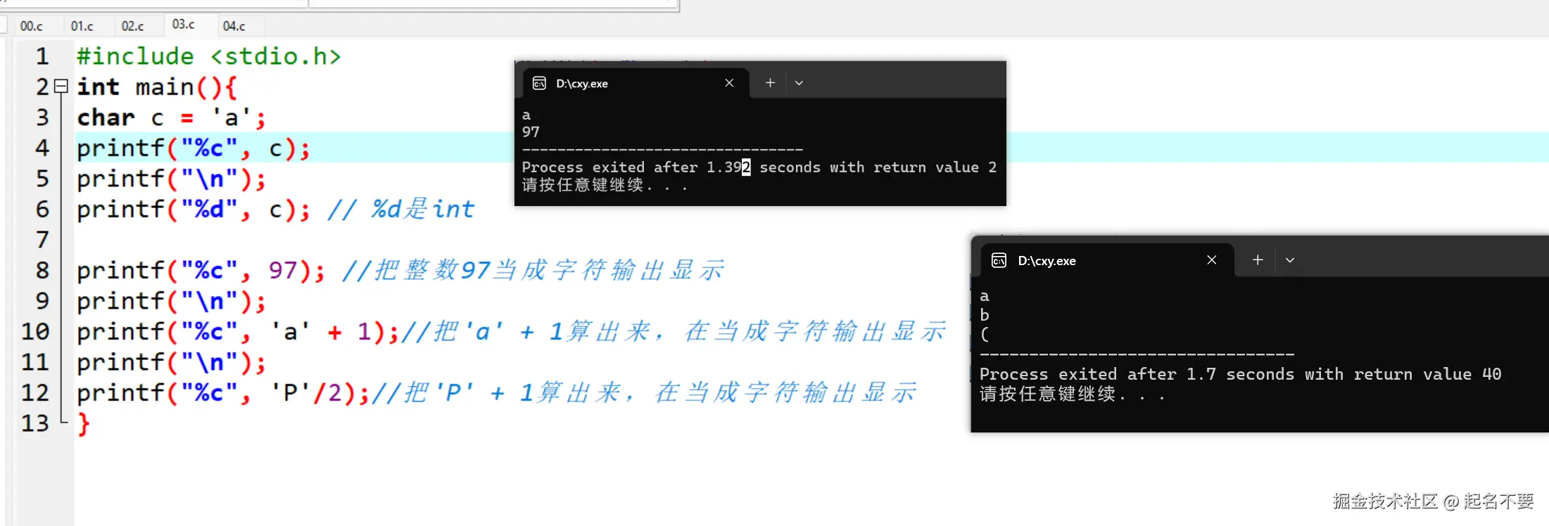 printf("%c", 'a' + 1);//把'a' + 1算出来,在当成字符输出显示