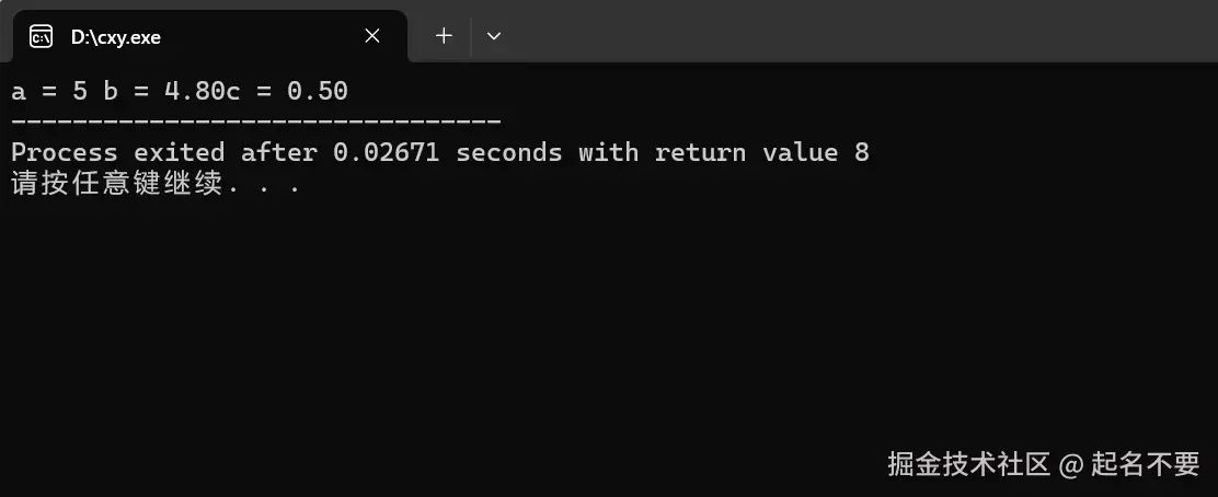 //print("c = %d", c); #double类型的变量,使用%d的格式输出,就会有问题