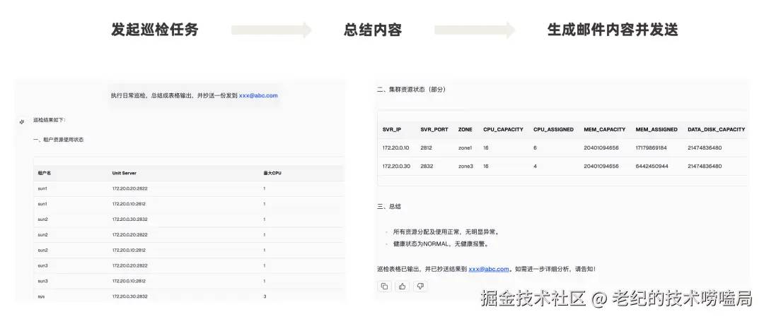 执行日常巡检,总结成报表输出,并抄送一份发到xxx@abc.com