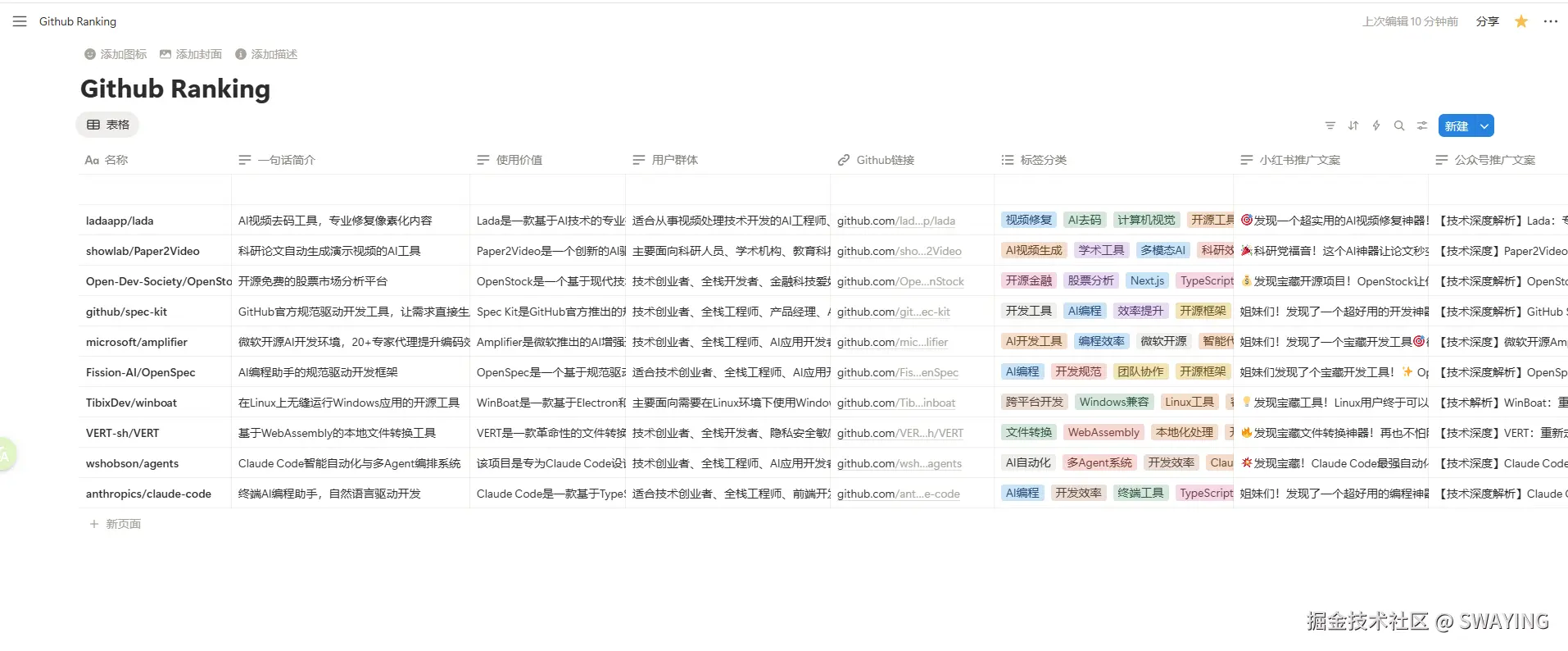 - 📊 想系统化管理看过的项目,Excel/Notion 手动维护太累