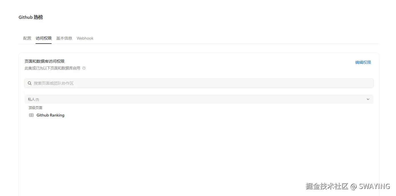创建开发集成,获取Notion 集成密钥,创建Github Ranking数据库页面