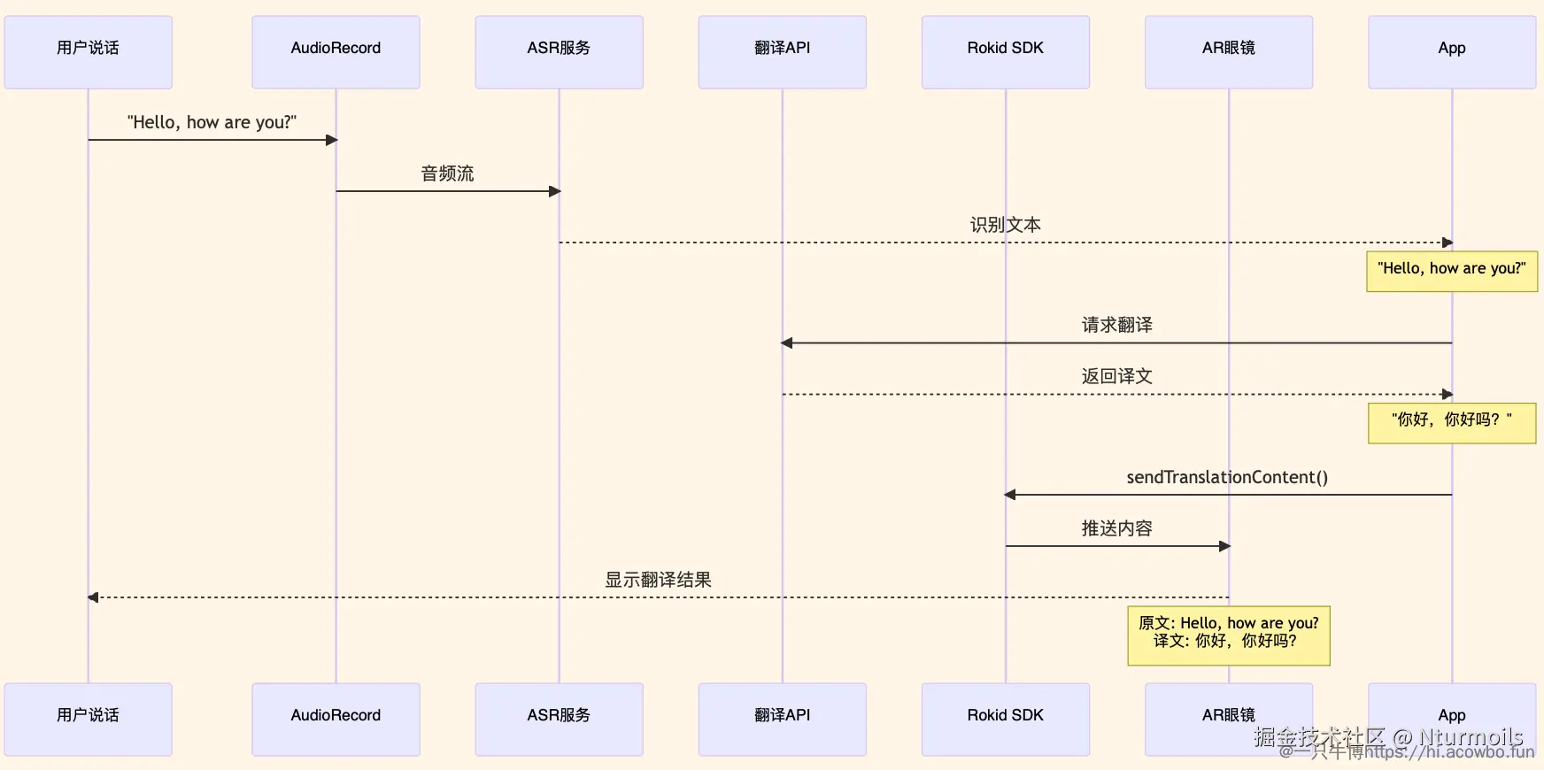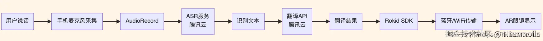 也就是说,我们需要自己实现"语音→文字→翻译"的完整链路,SDK负责最后一步"在眼镜上显示"。这种分工让开发者可以自由选择ASR和翻译服务商,灵活性更高。