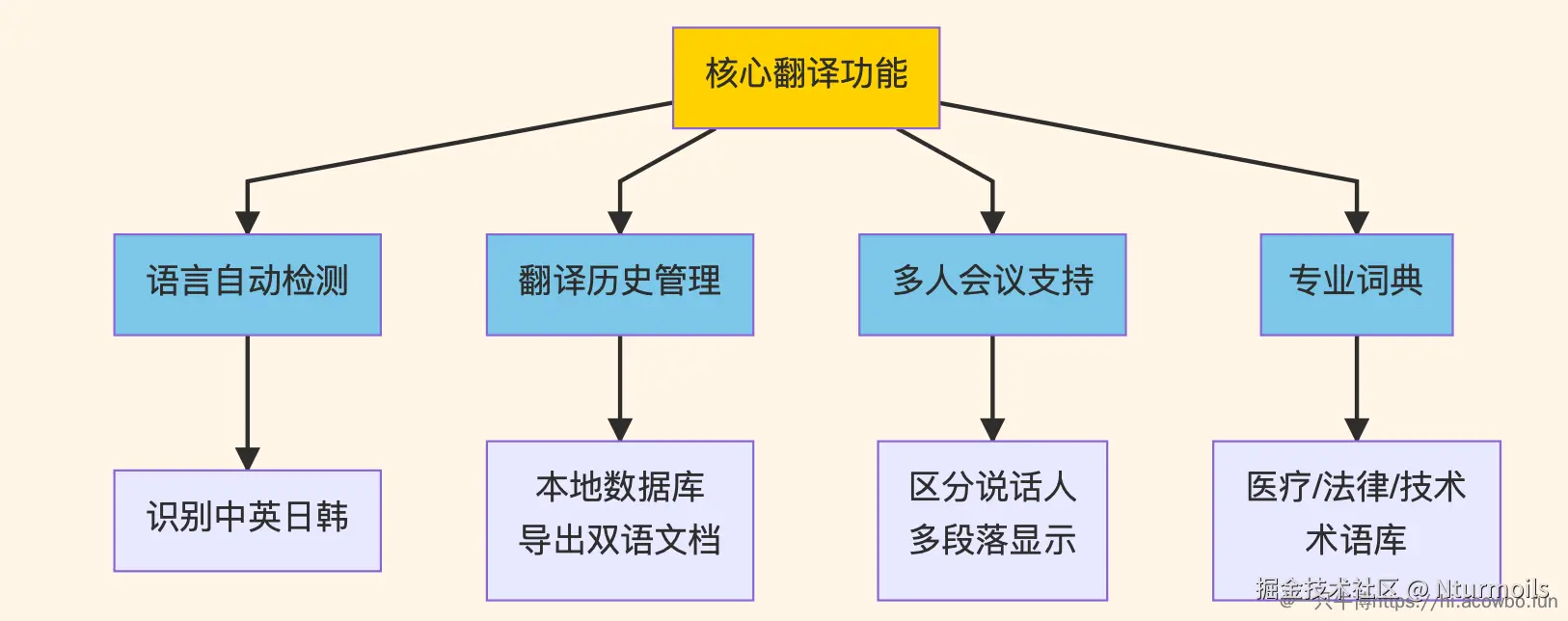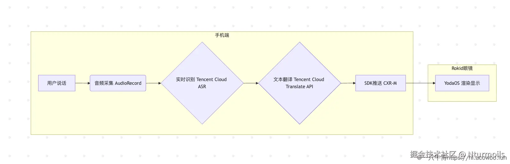 整个流程的关键路径包括:语音采集、ASR识别、翻译API、数据传输。