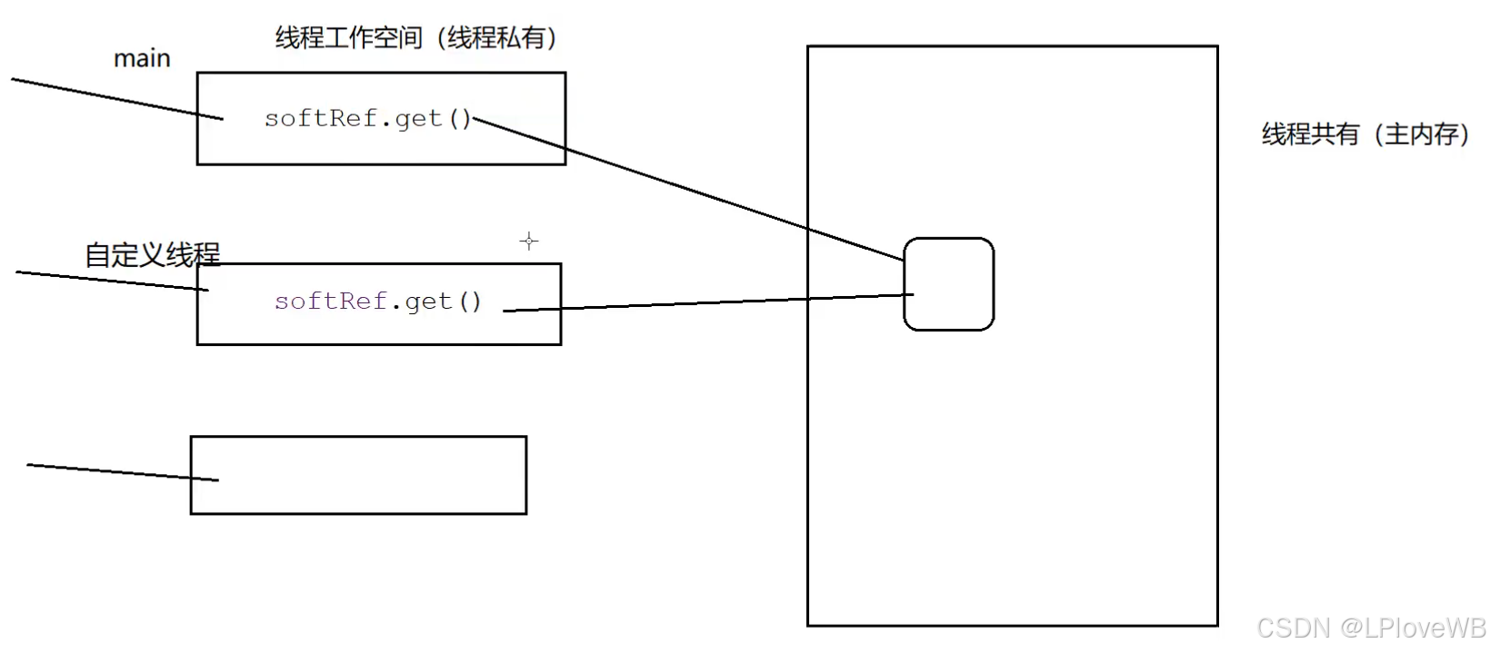 if (softRef.get() == null) { //在while(true)里边,线程判断的太快,没时间从主内存刷新内容过来