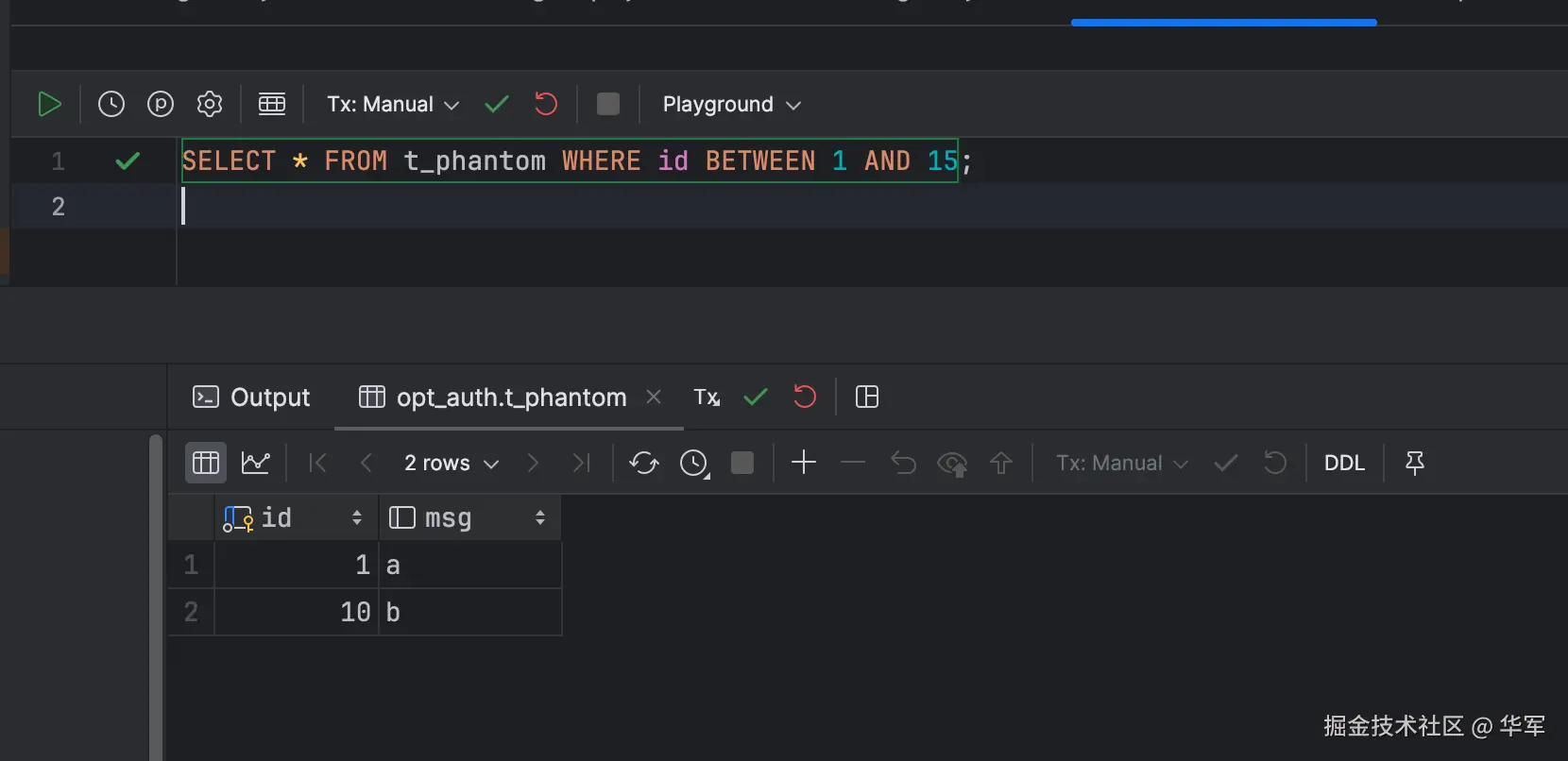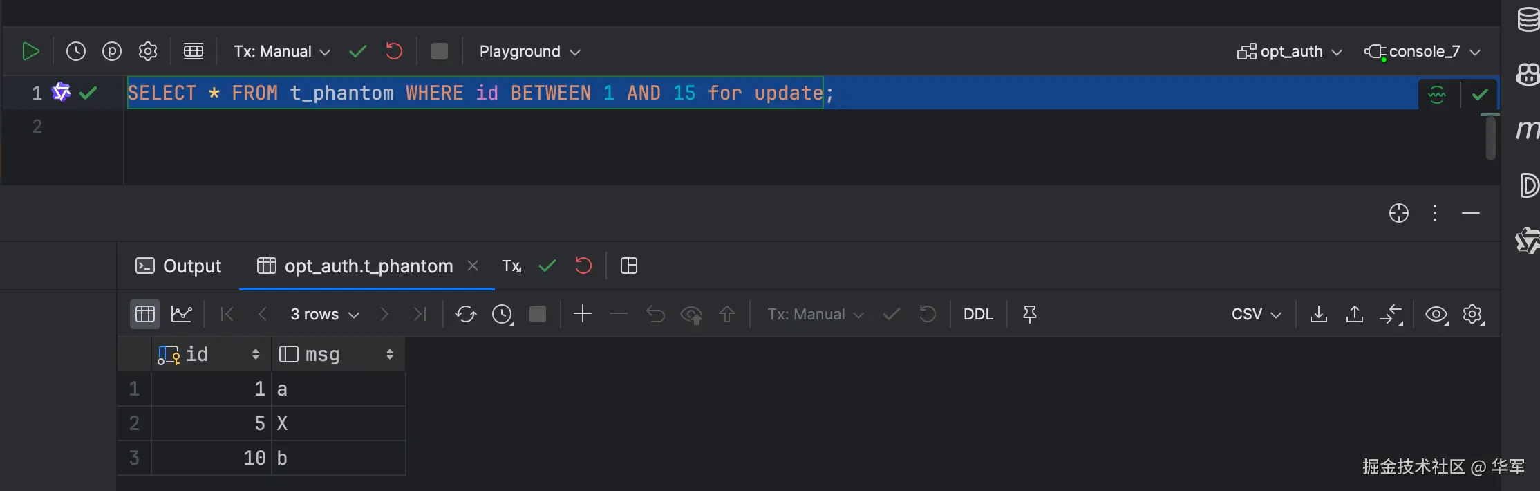 - 显示锁对于其它几个例子就没有办法了。因为预定会议室、创建用户、移动玩家,它们第一步的查询条件可能不返回任何数据或者一部分数据,但是在第三步具体写的时候查询条件返回的结果不一样,有数据了,这就导致我们无法提前进行加锁。