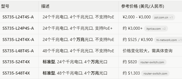 - 预算和性能要求:对于预算有限或网络要求不高的场景,S5735-L系列是性价比很高的选择。对于关键业务或未来有扩展需求的用户,推荐使用性能更强的S5735-S系列。