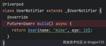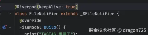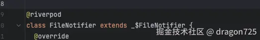 现在的riverpod推荐使用注解生成代码的形式,免去了一些provider代码的流程。使用Riverpod一般来说需要自己写一个Notiier类,用于管理state创建以及state更新逻辑;还需要写一个state类,这个state类通常用freezed注解去生成,主要是生成了json格式化的代码和copyWith代码,用于快速新生成一个State对象。