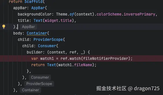 ,这两个组件用于提供WidgetRef,这个类似于Provider里面context的功能,是widget组件和状态的桥梁,用于获取provider的数据和一些操作