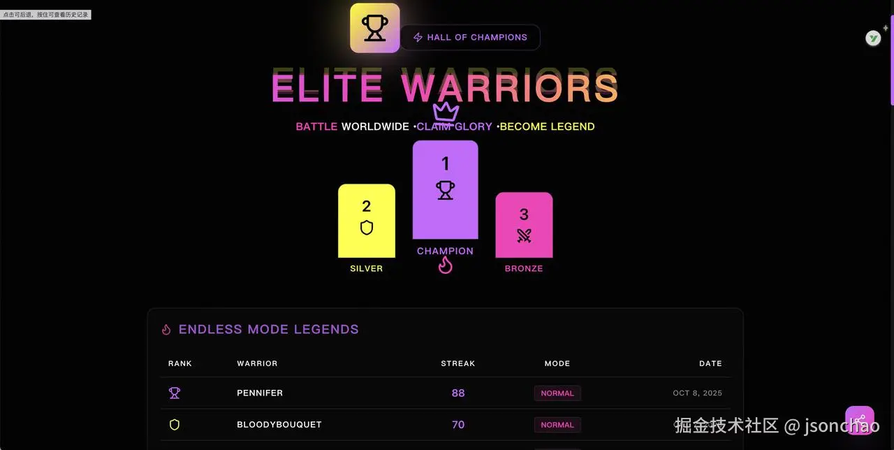 无限模式:不限次数,挑战最高连胜纪录 每日挑战:每天 10 轮固定题目,全球玩家面对相同挑战 难度选择:简单、普通、困难、极限四档难度