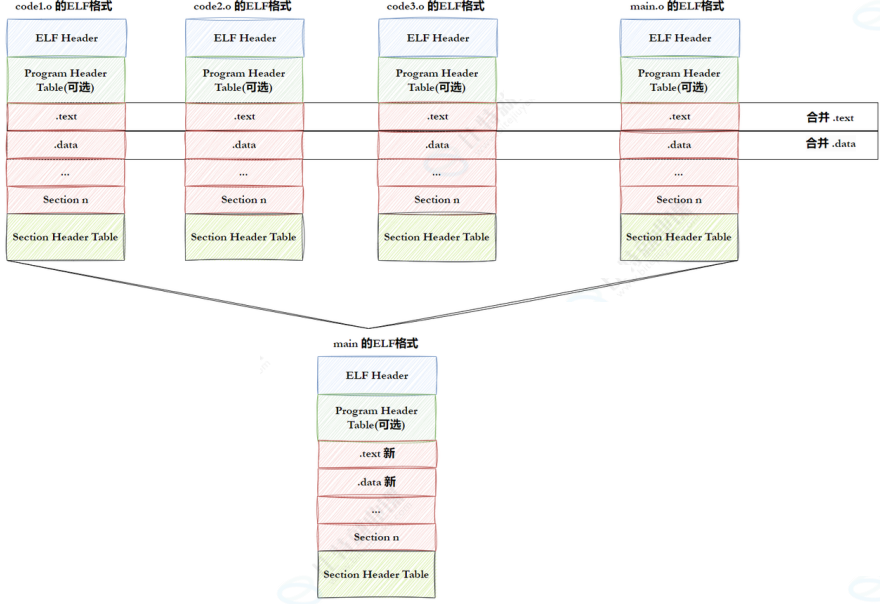 注意:实际合并是在链接时进行的,但是并不是这么简单的合并,也会