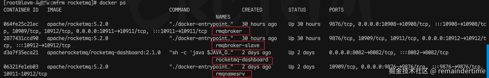 启动 rocketmq 容器相关服务