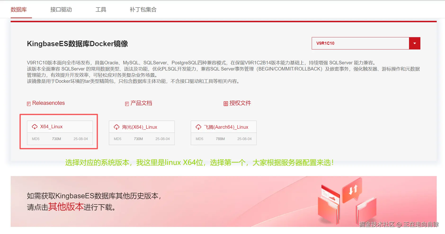 3、KingbaseES数据库Docker镜像,根据自己电脑配置选择对应的版本下载。