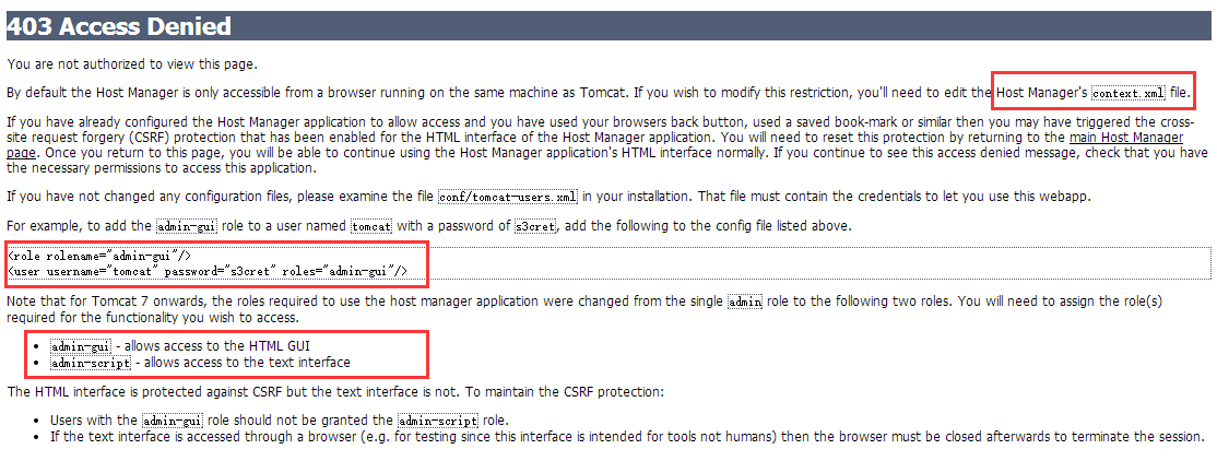 即使添加了用户名密码tomcat默认也只允许从本机登录控制台(而且URL中IP要是127.0.0.1)。