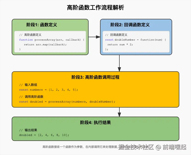 - 高阶函数的基础概念:接受函数作为参数或返回函数的函数