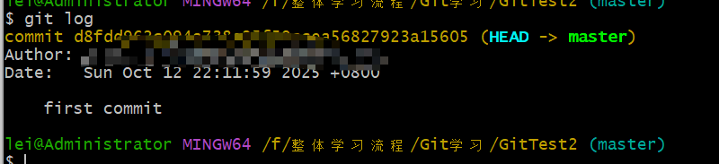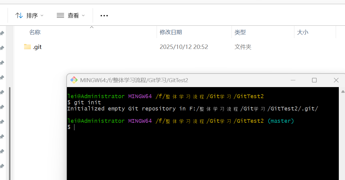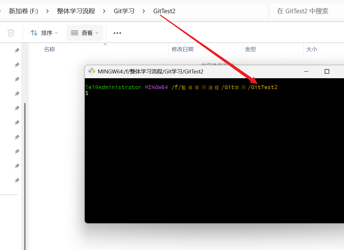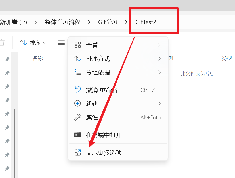 创建一个版本库也非常简单,如下我是F盘下 目录下新建一个GitTest2版本库。