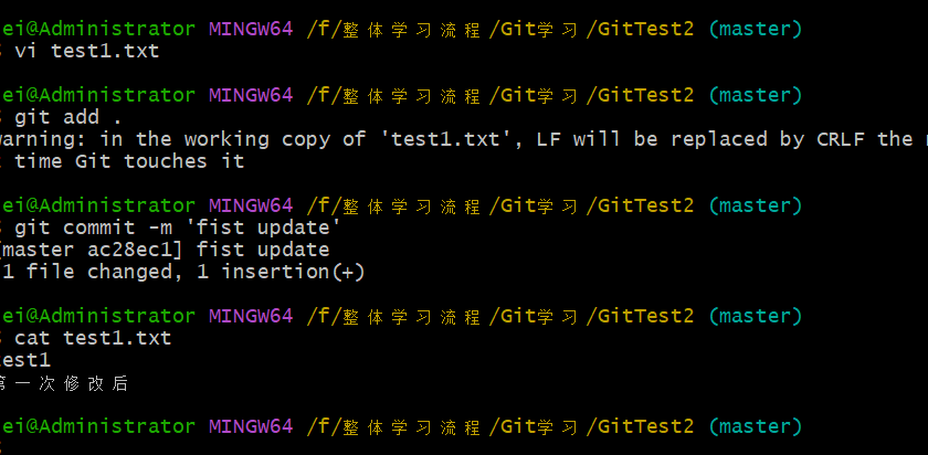 1.创建文件test1.txt, 此刻文件在工作区(WorkSpace)