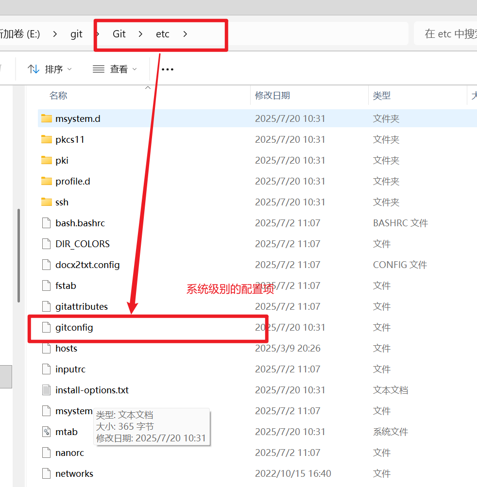 git系统级别对应的配置文件是git安装目录下的 /etc/gitconfig