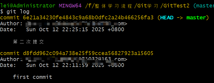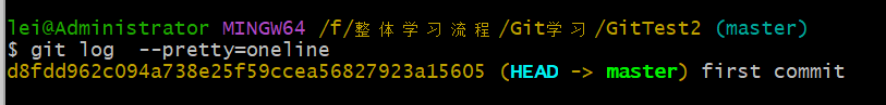 git log命令显示从最近到最远的显示日志,我们可以看到最近三次提交如果嫌上面显示的信息太多的话,我们可以使用命令 git log --pretty=oneline