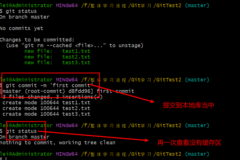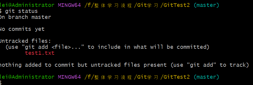 现在我们已经提交了一个test.txt文件了,我们下面可以通过命令git status
