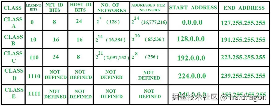 互联网编号管理机构(IANA)将 IPv4 分为 5 类(A--E):