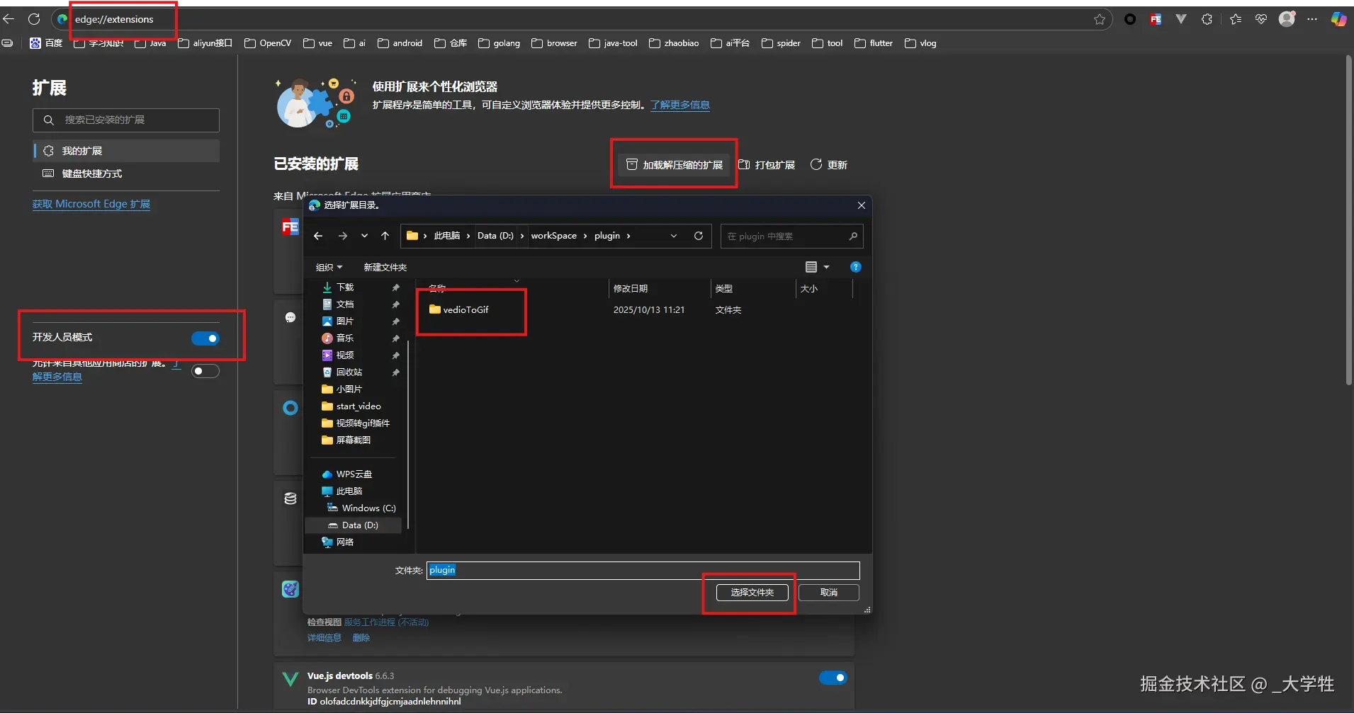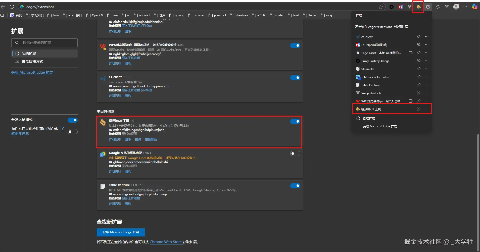 (如:edge://extensions/)- 开启右上角的 开发者模式
