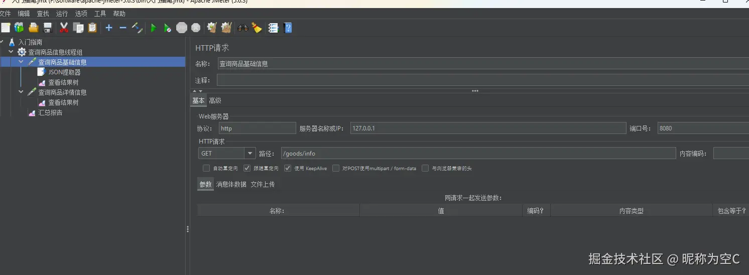 就是配置你调用的接口,如果有请求头一类的的,你再添加【配置元件/HTTP请求头管理器】