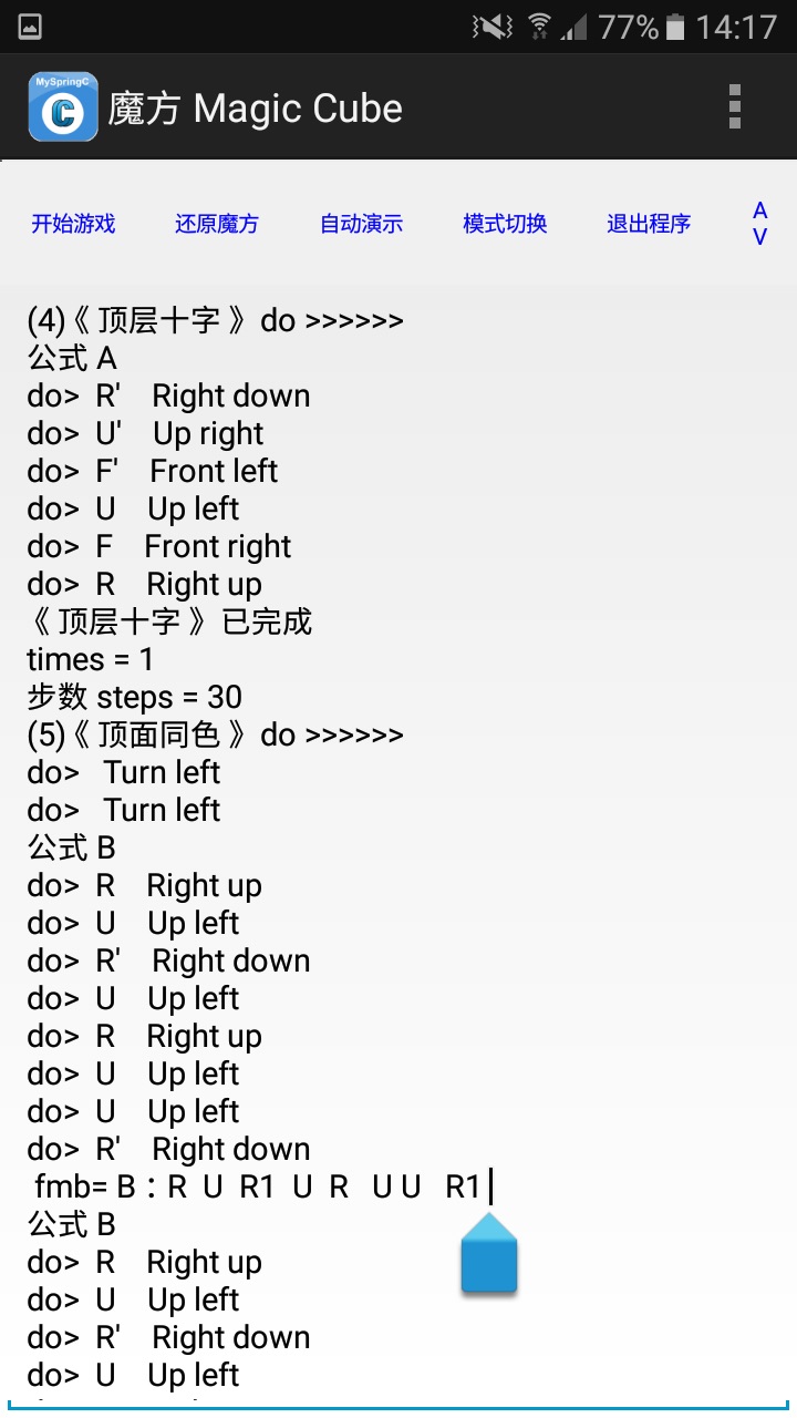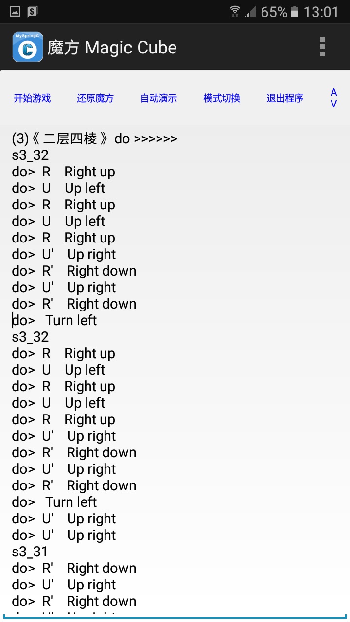 我心血来潮在手机上编写了一个玩魔方的游戏程序,前些时在本站发布了C语言源码。后来在网上看到有人编写魔方自动求解的东西,感到很有趣味。故此在原编译的游戏程序上加了魔方自动求解的部分。这也是AI 解决问题的探讨。