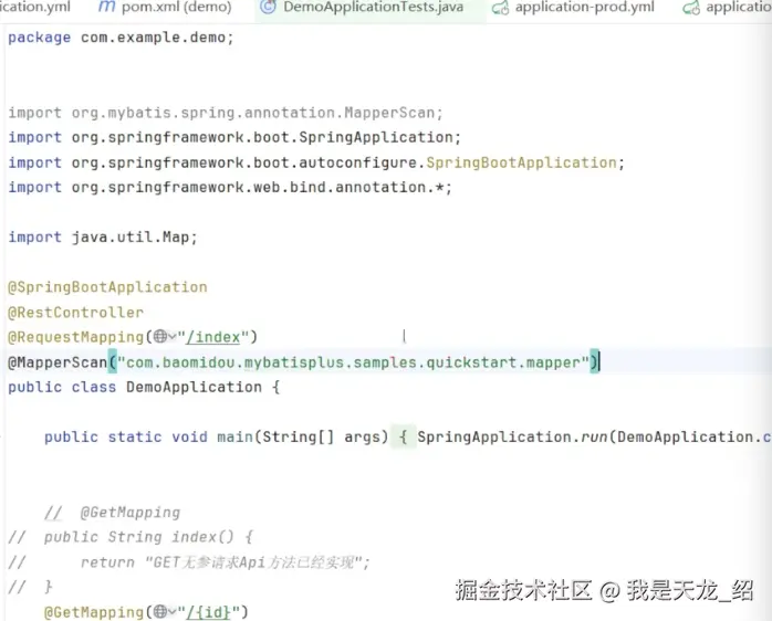 启动文件里面粘贴一下: @MappeprScan("com.baomidou.mybatisplus.samples.quickstart.mapper")