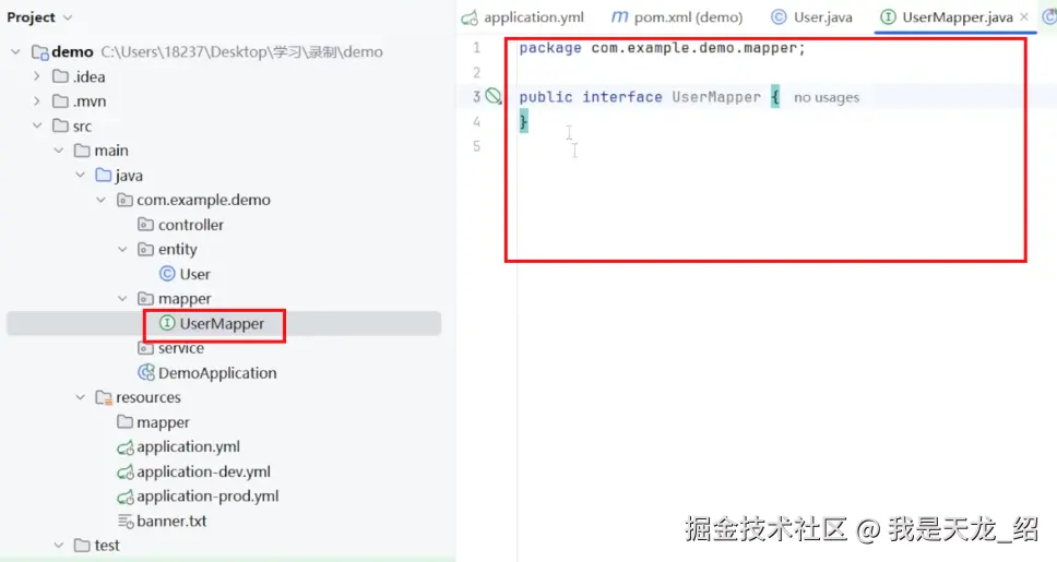这个路径改成我们的项目的路径com.example.demo.mapper