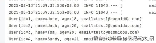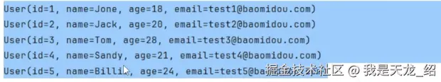 (1, 'Jone', 18, 'test1@baomidou.com'),