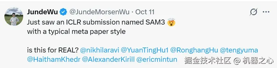 大家纷纷猜测,这篇论文出自 Meta,毕竟文风和 Meta 以前发布的论文非常相似。再加上 SAM 与 SAM 2 均由 Meta 推出,这让外界几乎可以确定,SAM 3 就是 Meta「Segment Anything」系列的正式续作。