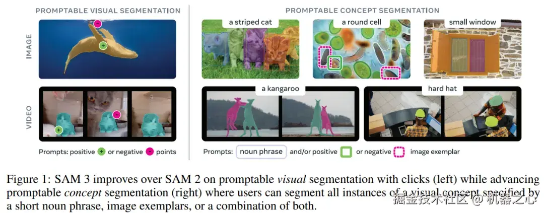 文中提到,SAM 3 是对 SAM 2 的扩展,其在图像与视频中实现了可提示分割(promptable segmentation)的重大突破。