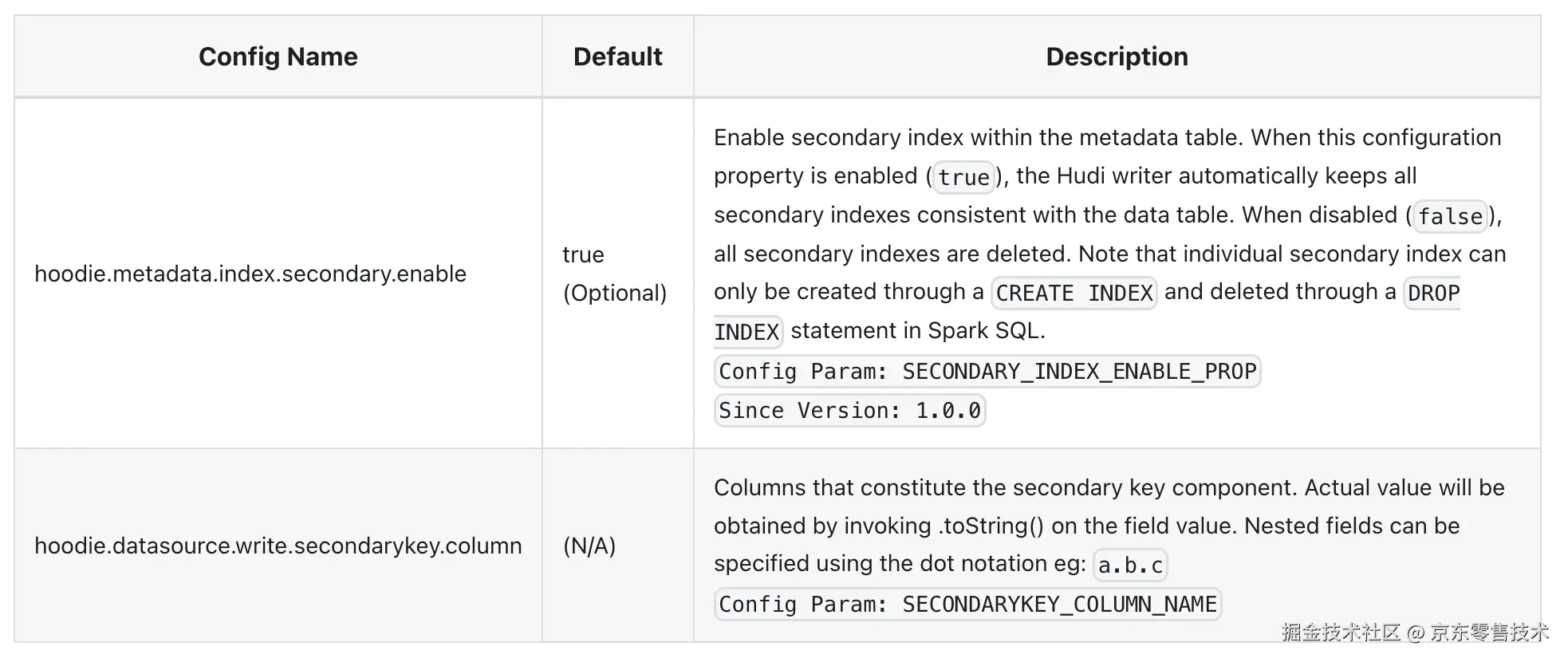 以下是控制在写入器上启用二级索引构建和维护的配置,后续会详细讲解,这个是1.0的新增的特性
