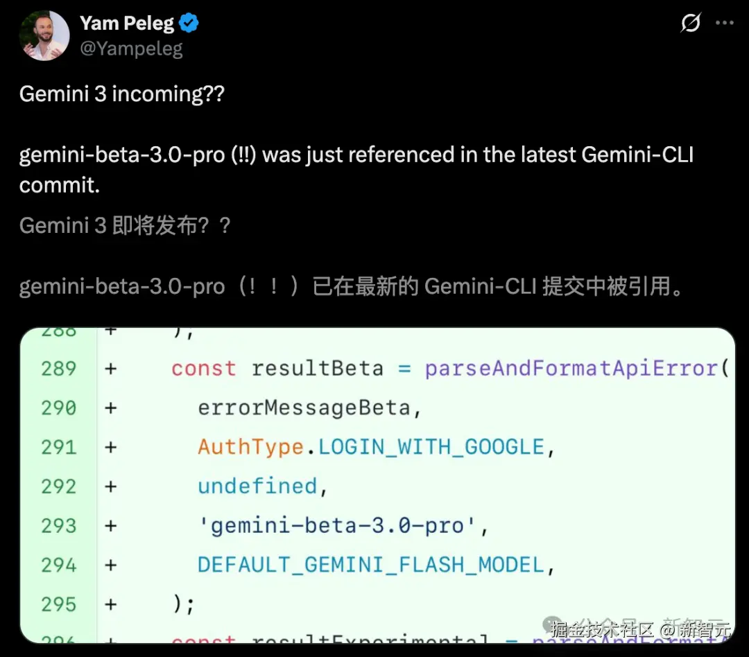 目前,gemini-beta-3.0-pro 已在最新的 Gemini-CLI 提交中被引用。