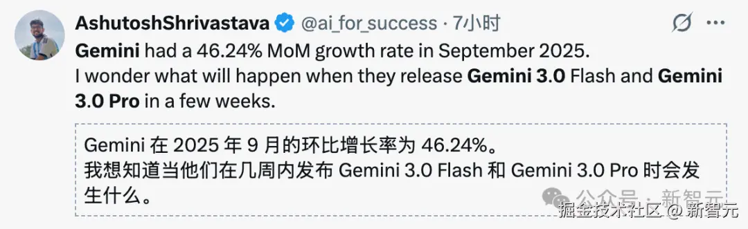 2025 年 9 月,Gemini 的环比增长率为 46.24%。