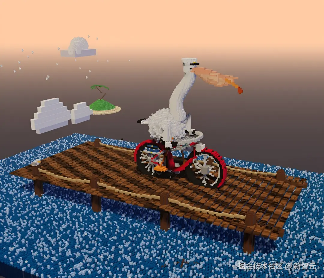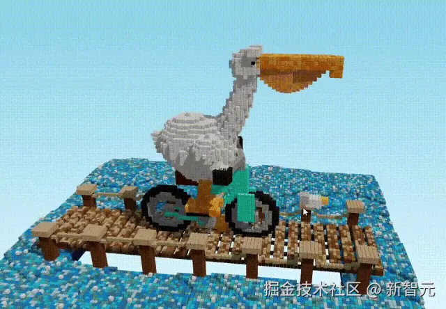 而 Gemini 3 Pro 甚至可以将「骑自行车的鹈鹕」做成 3D 版本的像素体艺术。
