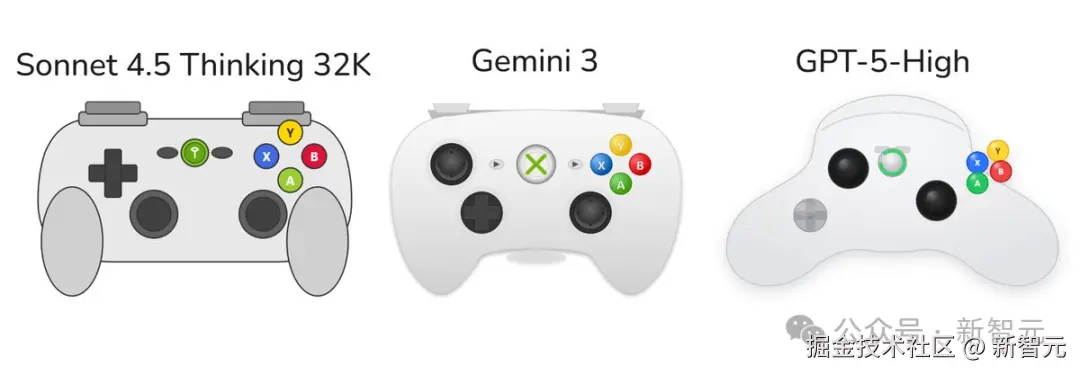 同一个提示------生成 Xbox 360 手柄的 SVG 图像,Gemini 3.0 更贴近真实效果。