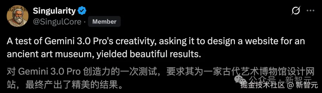 为古代艺术博物馆设计一个网页,Gemini 3.0 一次就做到了。