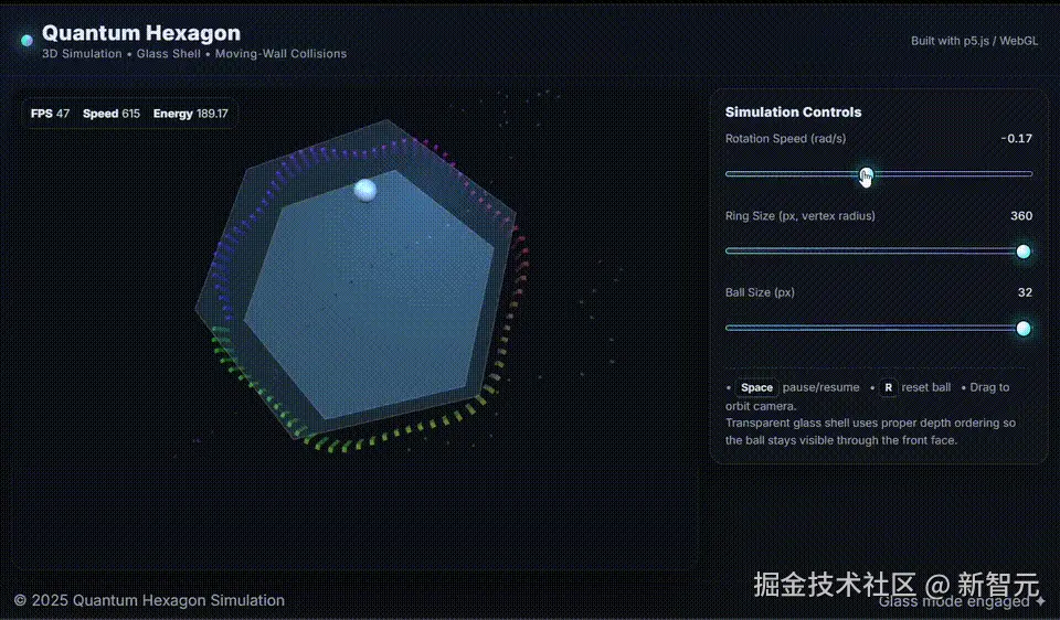 六边形小球物理测试已不算什么,Gemini 3.0 可以在 3D 六边形测试中,小球运动也能遵循物理定律。