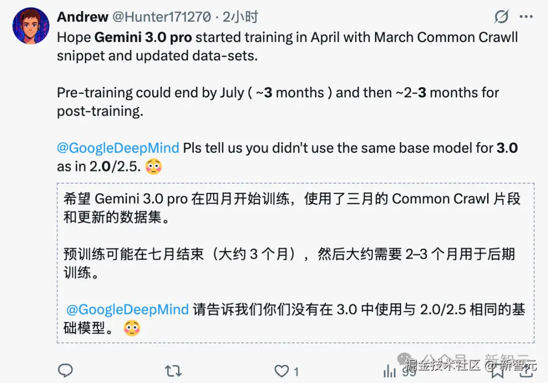 还有网友透露了 Gemini 3 Pro 的训练细节。