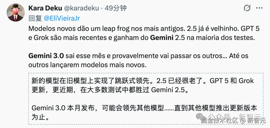 还有网友表示,Gemini 2.5 已经很老了,今年 3 月 25 日以「Experimental」(实验)版本形式首次推出。