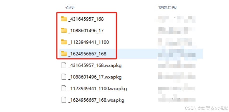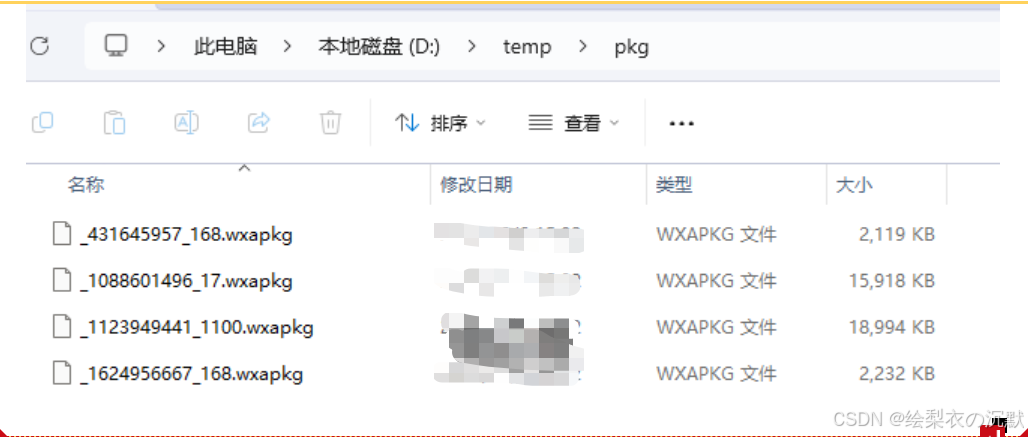 目录下存在很多wxapkg的文件就是小程序包,因为我们历史打开过很多小程序,所以无法准确找到我们需要的,需要先删除掉当前这些文件
