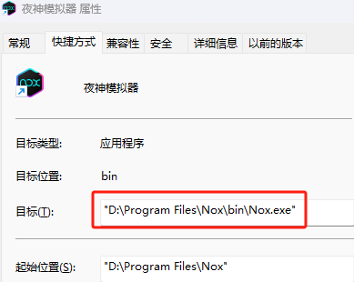 本机中找到夜神模拟器的安装目录,可通过查看快捷方式属性获取
