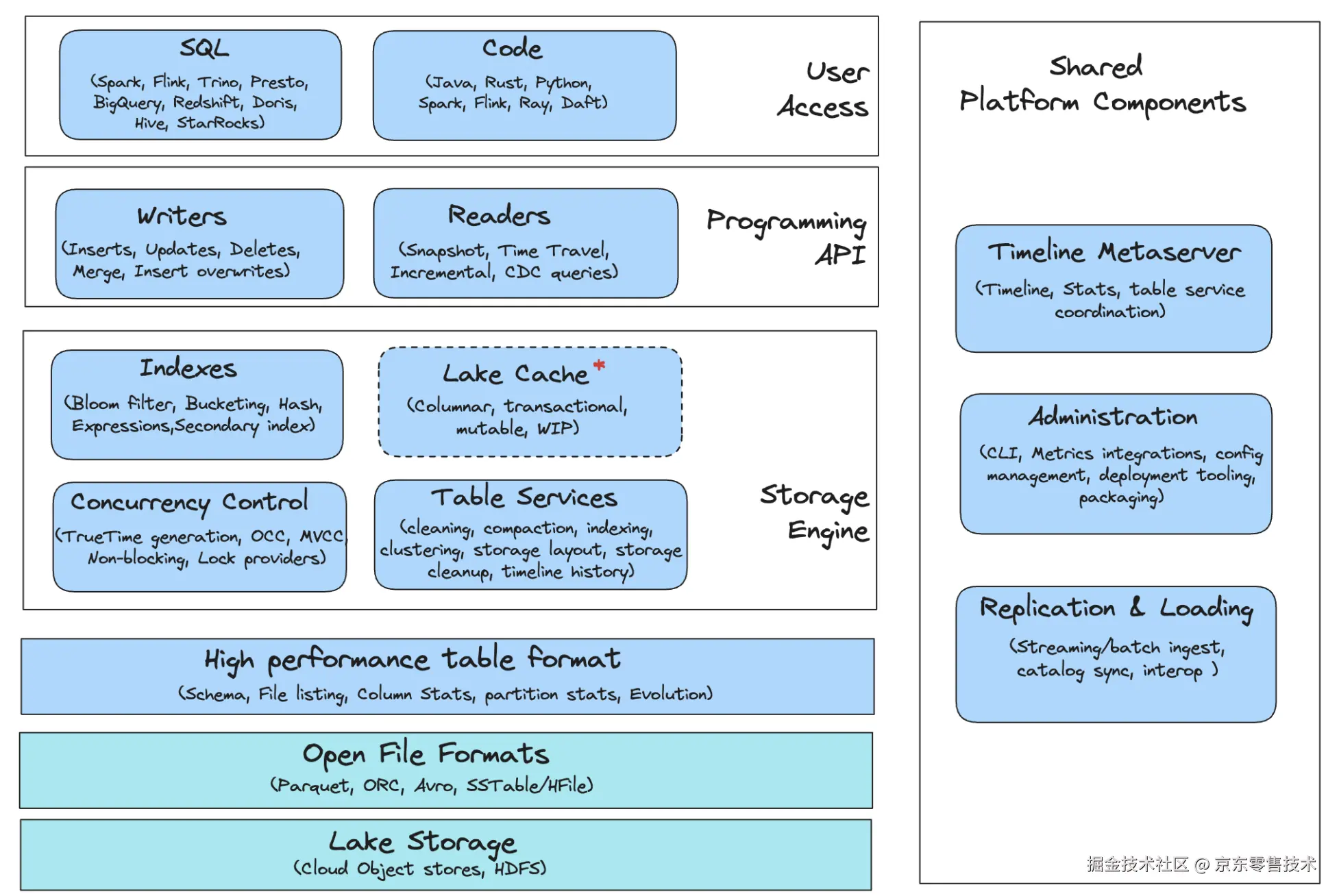 Hudi的核心是维护在不同时刻(Instant)在表上执行的所有操作的时间轴,提供表的即时视图,同时还有效地支持按时间顺序检索数据