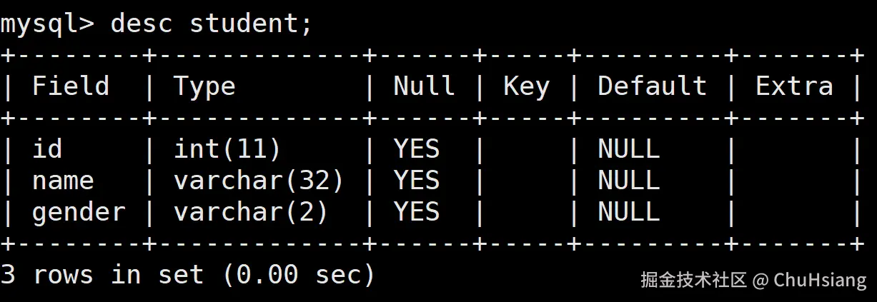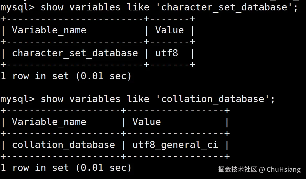 - collate校验规则,如果没有指定校验规则,则以所在数据库的校验规则为准;