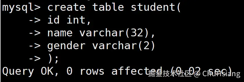 sqlCREATE TABLE table_name( field1 datatype, field2 datatyp2, field3 datatyp3 )character set 字符集 collate 校验规则 engine 存储引擎;