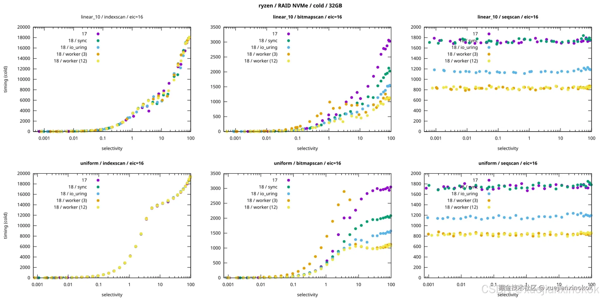 虽然 AIO 框架已经引入,但尚未得到广泛应用,因此目前需要对预期进行管理。Tomas Vondra 的这篇博文包含了我见过的最好的性能概述。