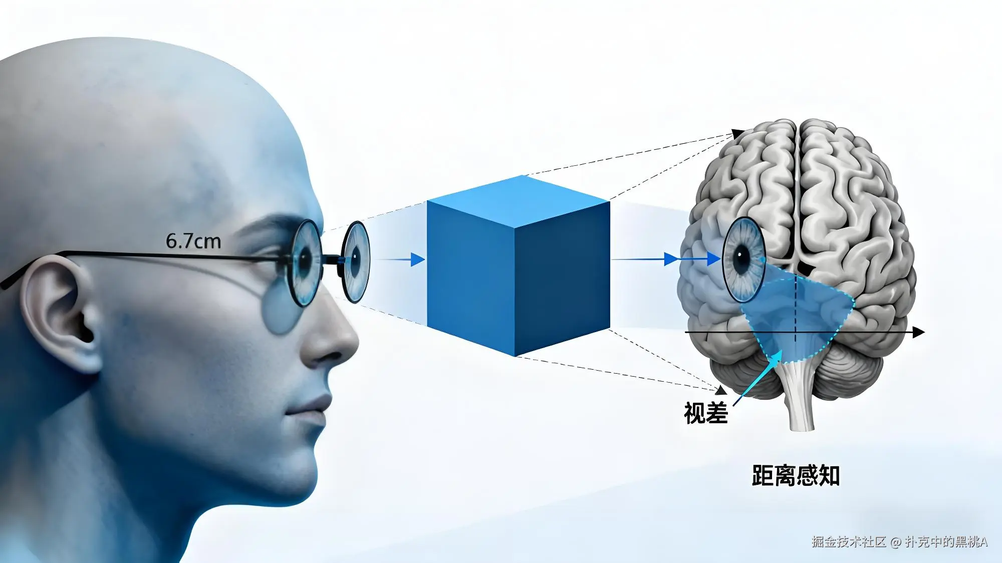 为啥我们能看到立体的世界?就是因为咱们的左眼和右眼之间有大概 6-7 厘米的距离(也就是瞳距),看东西的角度总会有点不一样,这就形成了"视差"。大脑就靠着这点视差,算出了东西的远近。